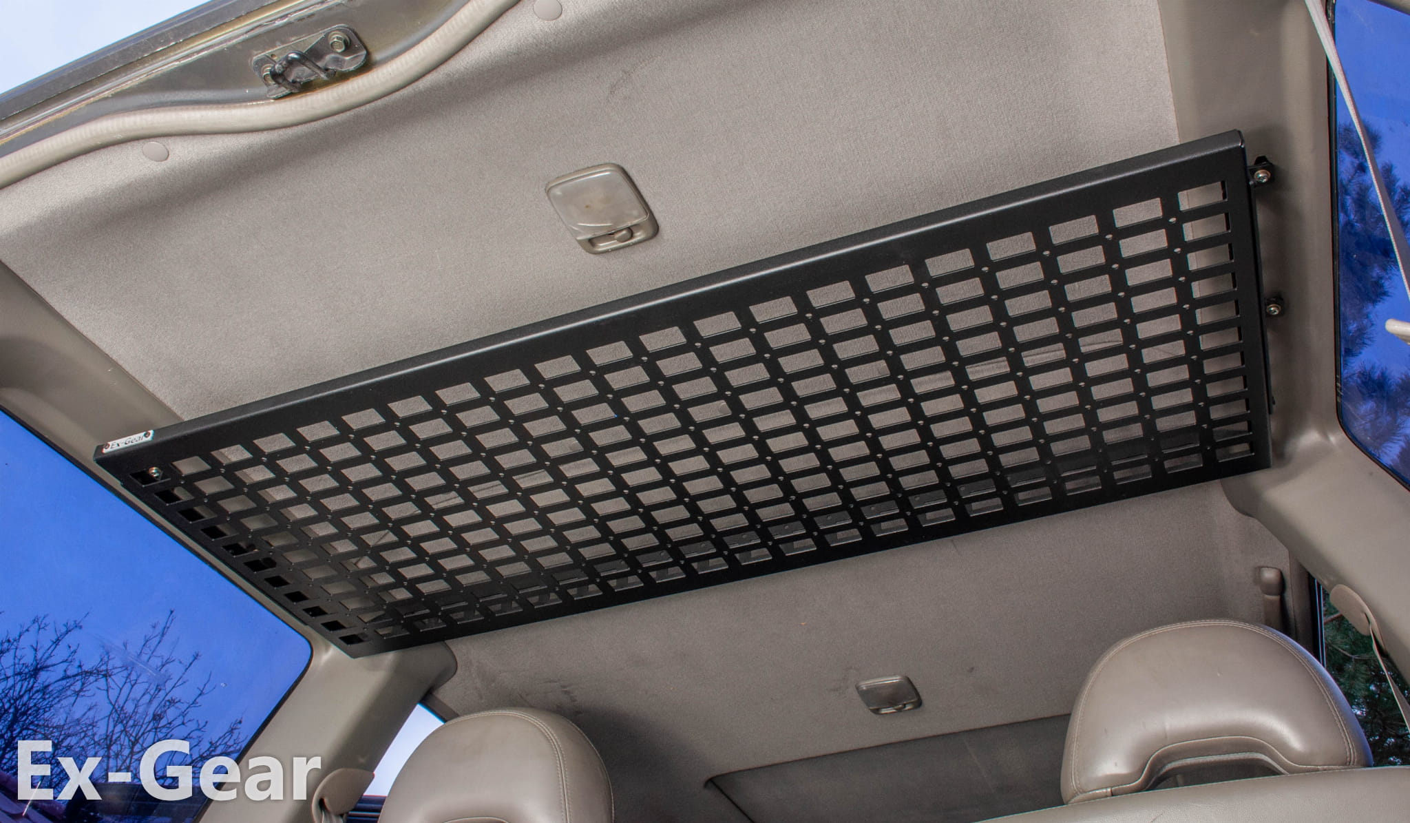 Unused space under the vehicle’s ceiling is the perfect spot to install a metal organizer. The Expedition-Gear overhead expedition shelf is designed to adapt to your needs. The front-to-back position can also be adjusted thanks to the holes designed on the sides of the metal mesh.